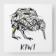 If you would like any help personalising this design, please use the ask this designer button, which is just below this text. And black and white illustration of a kiwi bird. This Kiwi is drawn with geometric shapes and patterns on it's wings.