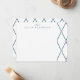 A fun, spring themed lattice pattern personalised stationery set. Inspired by wicker lattice patterns found in outdoor furniture, this pattern features a navy blue lattice with purple accents.