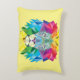 The cushion is small to medium sized. It can be washed. It is well constructed. The material used is pleasant and feels decent quality. It has a very slight plush feel which is good. It is well labelled and its care clearly stated. Theres nothing not to like about it. All in all a good item. The deduction of one star overall is due to long delays in delivery to the UK. It's not clear if this was due to Zazzle or somewhere else in the chain as I did not receive status updates of dispatch or progress. I cannot comment anymore on that other than to say that was our experience but it may not be the same for you. The printing was surprisingly close to what we were expecting. Its an art piece and on material so its hard to assess the precision of printing but it seems close to the original. The soft lines are reproductions of the original. The colour is a fair reflection of the painting. This was printed in the US and it looks like US quality. No issues.