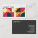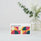 A business card template with an attractive geometric composition made up of 2 x 5 equal square areas in an attractive palette of colours. Company details on the front with name and contact details on the back in white on a contrasting dark grey background. Can be adapted to a variety of businesses and other uses. Can also be changed for use more as a profile card by removing or swapping the company and personal name details.