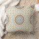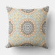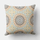 Geometric Mandala in Orange, Grey, and Blue Cushion