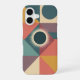 A minimalist eclipse design set on retro geometric blocks, rendered in a gentle, vintage palette.