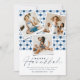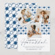 This modern Hanukkah card features 3 instant photo collage on a background pattern of geometric stars pattern. The greeting is a mix typography of a trendy handwriting script and simple sans serif text.