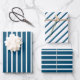 Geometric Ocean Blue and White Stripes Wrapping Paper Sheet