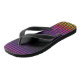 A cool geometric ombre pattern in summery purple, pink and yellow gradient on a lovely pair of flip-flops. A trendy modern flip-flop that is perfect for