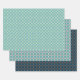 A geometric pattern of overlapping circles. Each sheet of wrapping paper is a slightly different colour combination.