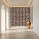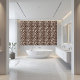 This tile features a modern geometric pattern reminiscent of classic parquet flooring, rendered in rich brown and crisp white tones. The design offers a contemporary twist on a traditional look, making it suitable for a variety of interior styles. Ideal for adding a touch of sophistication and visual interest to floors, walls, or backsplashes. This durable and stylish tile is perfect for both residential and commercial spaces.