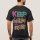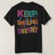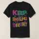 colourful design featuring the phrase "Keep Smiling Bright" in a geometric pattern, with each letter in a different vibrant hue.