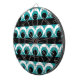 Geometric pattern illustration with stripes, circles and round shapes in turquoise, black and white colors