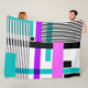 geometric pattern in striped and neon colours fleece blanket