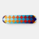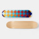 Geometric pattern of colourful chess style squares with gradient effect and warm and cool colours.