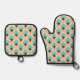 Geometric pattern of teal, beige, and black shapes oven mitt & pot holder set