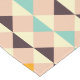 Geometric pattern with overlapping diamonds and triangles in orange, teal, cream, brown, and pink. The design is symmetrical, creating a vibrant, playful feel.
