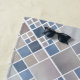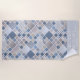 A modern design beach towel featuring a geometric pattern in the colours of the Atlantic Ocean with a text background area (optional) and custom text (also optional). Beautiful for any beach lover or a hotel, B&B or guesthouse.