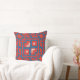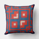 Geometric Pattern Red Shapes on Blue Background Cushion