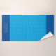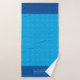 Blue and aqua geometric pattern and scalloped borders Bath Towel Set. The bath towel features an elegant aqua blue geometric pattern and bands on the short sides with scalloped edges. There is also a frame with your family name. The hand towel showcases a scalloped border around it while the wash cloth is in blue in the centre with a geometric border and your monogram. You can personalise it with your family name and monogram.