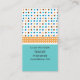 Beautiful custom design business card with polka dot and solid blue colour. Colourful and friendly, double-sided custom design school, child and baby friendly. Great for the school teacher, but also suitable for anyone in the baby clothing business or baby/child occupation. Whether for business or personal, there's nothing like a cute custom designer business card like this to make a lasting impression. Add custom information about you, your industry or occupation. Efficient printing on demand business card.