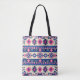 Geometric Pattern Tote Bag - Blue and Pink Stripes