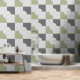 Add a touch of modern playfulness to your space with our geometric pattern wallpaper, showcasing a blend of circles, squares, and triangles in muted green, grey, and white tones. This contemporary design brings a stylish and subtle flair to any room, ideal for those looking to create a unique and inviting atmosphere. Perfect for living rooms, bedrooms, or playrooms, this wallpaper is easy to apply and built to last.