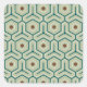 Geometric pattern with interlocking hexagons in green and teal, featuring brown hexagons in the center. The design is symmetrical and retro-inspired.