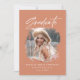 Geometric photo typography graduation announcement. Featuring bold typography and on trend script text. Geometric terracotta background colour can be altered.