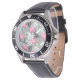 My husband loves the watch, he likes the dial, the graphics, the band, and it keeps perfect time.
