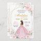 Blush Pink Mexican Princess Quinceañera Invitation, Soft Pink Floral, Gold Crown Quince Tiara, Mexican Girl 16th Birthday, Sweet 16th Quinceasera Birthday Girl, Geometric Gold Royal Princess Quince Invitation, Mexican Girl Birthday Party.