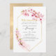 Pink watercolor floral spring 50th wedding anniversary invitation featuring sakura blossom with gold geometric frame customisable to your event specifics.