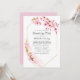 Pink watercolor spring blossom long distance bridal shower by mail invitation featuring sakura blossom with gold geometric frame.