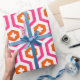 Geometric Pink Orange Hexagon & Cross Pattern Wrapping Paper