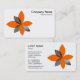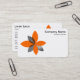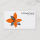 A business/profile card template with a geometric abstract plant or flower motif made up of leaf like shapes, four of which are solid colour and three are semi-transparent and texture filled. Company name and business type on the front balanced with the motif on the left. Name an all other contact on the reverse with the motif on the right. Ready to be customised with your details, suitable for many types of business.