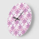 Geometric Purple Watercolor Flower Tile Pattern Large Clock
