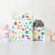 This geometric wrapping paper roll features rainbow confetti on a white background. Perfect gift wrap for birthdays.