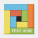 Design shows pattern of rectangles in matching colours. The centre square is black by default, but can be recolored by changing the background colour. Or you can insert a small square photo. Text can easily be edited, moved or removed.