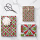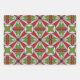 Featuring a geometric pattern in gray, taupe, and two shades of red and green, this wrapping paper will add a sophisticated touch to your holiday gifts. This set includes the pattern in three different sizes.
