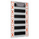 One vertical string of red simple symbols on each side. Centre part has black stripes. The colour between the black stripes (background) can be replaced to create exciting new effects. Choose black to make the entire centre field black, or choose white to connect with the pattern background on the sides.