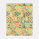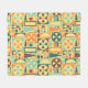 This original, retro 50s / 60s mid-mod abstract geometric pattern is made of triangles, squares, rectangles and circles, all done in vintage shades of orange, brown, teal green and seafoam on a cream yellow / light orange background. The pretty pattern repeats seamlessly. This elegant fleece blanket is for fans of midcentury modern art. Brighten up your home decor with this cool blanket.