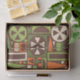 This original, retro 1950s / 1960s style mid-mod abstract geometric pattern is made of triangles, squares, rectangles and circles. It's designed in vintage shades of orange, green and cream on a brown background. This pretty pattern repeats seamlessly. It's for fans of midcentury modern art. Add a touch of antique, mod elegance with this cool minimalist motif.