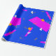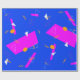 A neon blue and pink 80s-themed retro wrapping paper design for any occasion, especially birthdays and holidays.