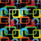 This cool graphic geometric pattern featuring rounded rectangles and circles with offset cutouts, reminiscent of mid century modern design, has been updated with a lively palette of various colours. Easily customise it with your favourite background colour.