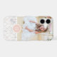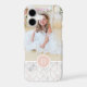 Elegant monogrammed phone case features a printed marble patterned background in pale shades of grey and white, with an art deco style geometric patterned overlay in faux rose gold foil. Personalise with a treasured photo, then add your single initial monogram in classic white lettering on a circle of blush pink to make this chic case your own.