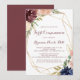 This geometric rustic gold calligraphy first communion invitation is perfect for a modern religious event. The design features hand-drawn watercolor purple, navy, blush, burgundy, navy flowers, green and gold leaves adorning an elegant geometric frame.
