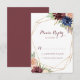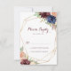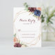 These geometric rustic gold modern calligraphy RSVP cards are perfect for an elegant wedding. The design features hand-drawn watercolor purple, navy, blush, burgundy, navy flowers, green and gold leaves adorning an elegant geometric frame.