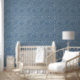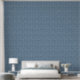 This wallpaper features a modern geometric pattern of hand-drawn scallops with line art in cream on smokey blue for a contemporary look.