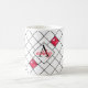 Modern black geometric lines and dots with red diamonds. Optional monogram