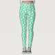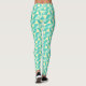 Ladies Leggings in a geometric pattern in turquoise and yellow on a light blue background. Primary colours are turquoise, light blue, and yellow.