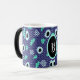 Coffee mug with geometric shapes and dots blue and turquoise shades