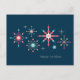 This modern holiday card showcases a collection of bold, geometric snowflakes against a deep navy blue background. Each snowflake is meticulously crafted in vibrant colours of red, blue, and gold, offering a striking visual contrast. The minimalistic "Happy Holidays" message subtly complements the design, making it perfect for sending festive cheer during the holiday season. This card is ideal for those who appreciate a clean, contemporary aesthetic while maintaining the warmth and tradition of holiday celebrations.