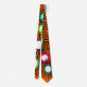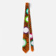 This tie has a geometric design of circles of different colours with lines coming out.