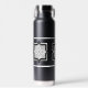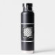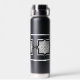 This water bottle has a contemporary geometric design. This is a simple pattern made up of coloured squares that overlap each other. The design is neatly held together with a wide band above and below.